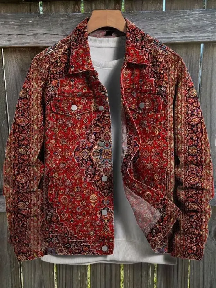Desenli etnik motifli ceket, modern şehir stilini etnik dokunuşlarla başarılı bir şekilde harmanlıyor. Parçanın canlı kırmızı tonu ve çok renkli motifleri, benzersiz bir görsellik sunarken her ortamda fark yaratmanızı sağlıyor. Bu tasarım; eşsiz desenleriyle kombinlerinize sofistike bir hava katarken, rahat kesimi sayesinde hem şıklık hem konforu bir arada sunuyor.